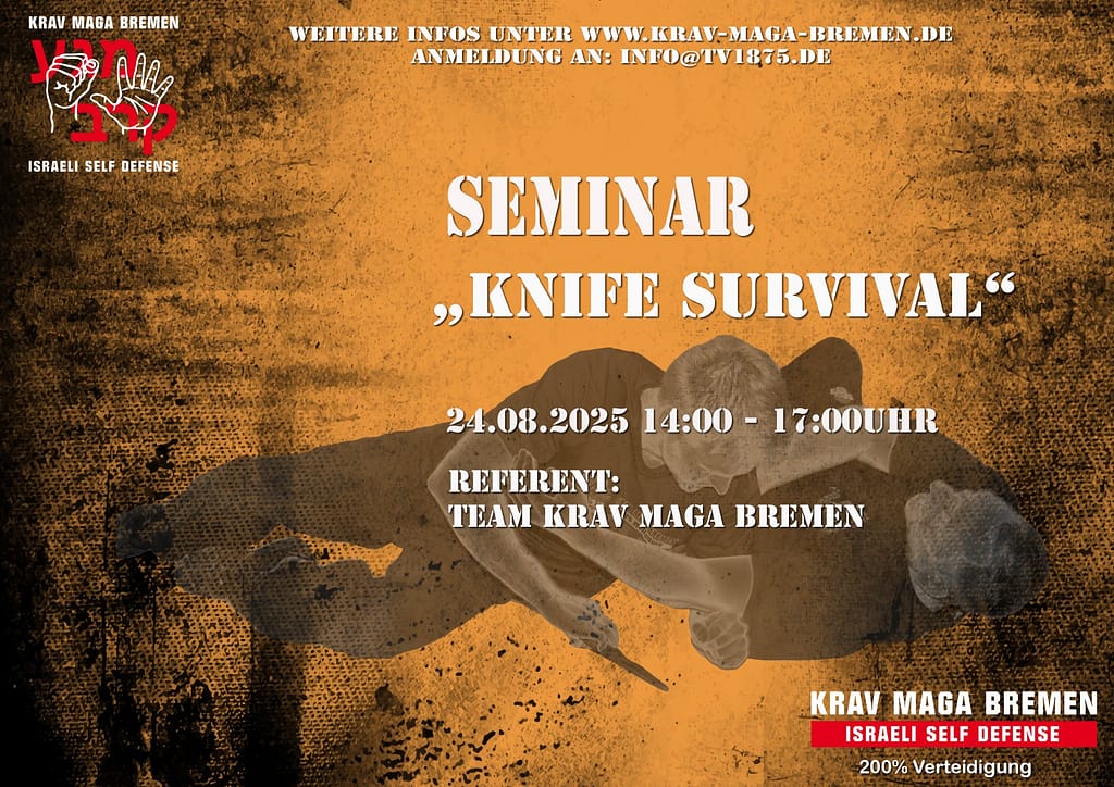 Nach den international und erprobten Konzepten und Prinzipien von Jim Wagners „Knife Survival“ werden die Teilnehmerinnen und Teilnehmer in diesem intensiven Seminar in die Lage versetzt, einen Angriff mit einer Schnittwaffe nach dem bewährten Grundsatz: „ Be a hard target“ erfolgreich und möglichst unverletzt zu bewältigen.